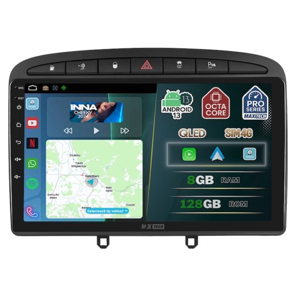 HomeShop308 2007-2014Navigatie Peugeot 308 ( 2007-2014 ) dedicata, MaxTech® PRO SERIES, 8 GB Ram 128 GB Rom OctaCore, Carplay & Android auto, Ecran 9” HD Touch, SIM 4G, GPS, Wifi, Bluetooth, Radio, EQ, Waze, Youtube