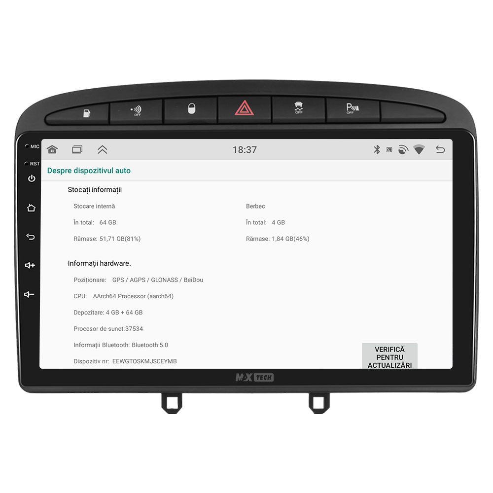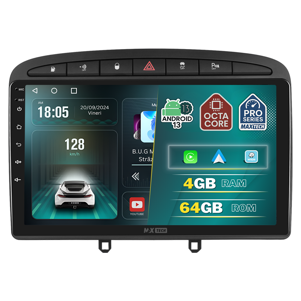 Navigatie Peugeot 308 ( 2007-2014 ) dedicata, MaxTech® PRO SERIES, 4 GB Ram 64 GB Rom OctaCore, Carplay & Android auto, Ecran 9 ” HD Touch, GPS, Wifi, Bluetooth, Radio, USB, EQ, DSP, Waze