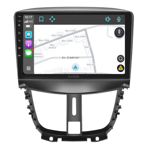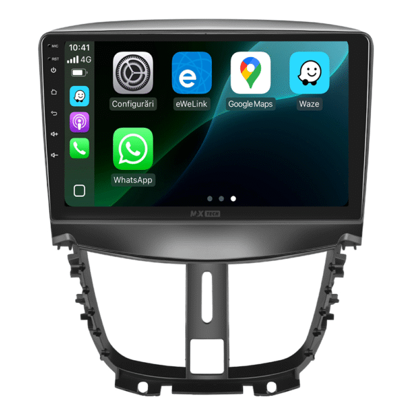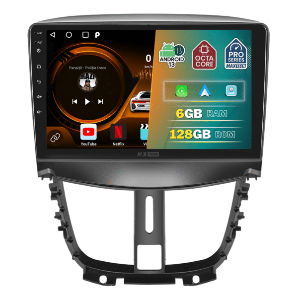 Navigatie Peugeot 207 (2009-2013) dedicata, MaxTech® PRO SERIES, 6 GB Ram 128 GB Rom OctaCore, Carplay & Android auto, Ecran 9” HD Touch, GPS, Wifi, Bluetooth, Radio, USB, EQ, DSP, Waze