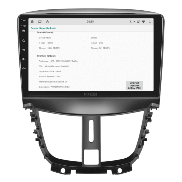Sistemul MaxTech Pro Series este echipat cu un procesor OctaCore de tip 4+4, 6 GB RAM si 128 GB stocare, pentru multitasking rapid. Ecranul IPS HD de 1280×720 ofera culori reale si vizibilitate excelenta din orice unghi, cu design modern 2.5D.