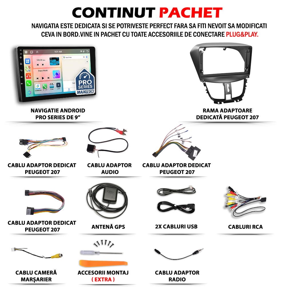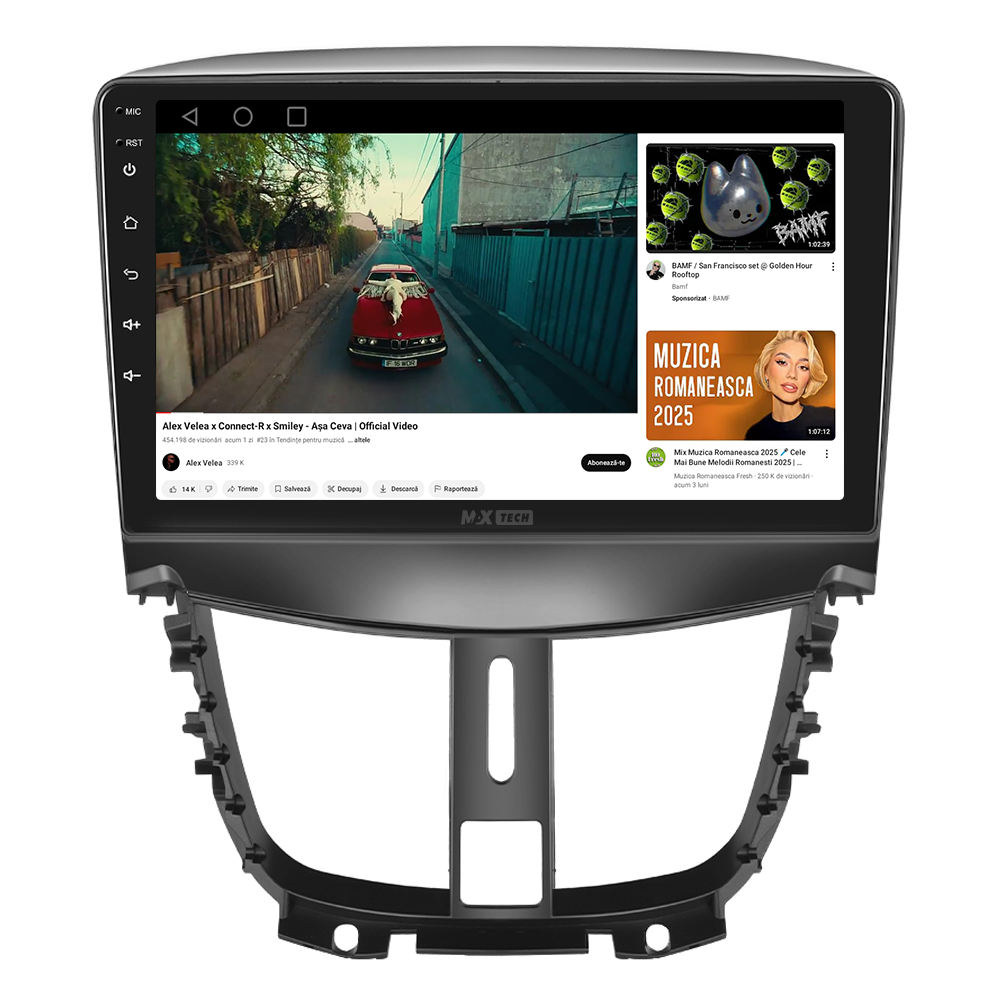 Navigatie Peugeot 207 (2009-2013) dedicata, MaxTech® PRO SERIES, 6 GB Ram 128 GB Rom OctaCore, Carplay & Android auto, Ecran 9” HD Touch, GPS, Wifi, Bluetooth, Radio, USB, EQ, DSP, Waze