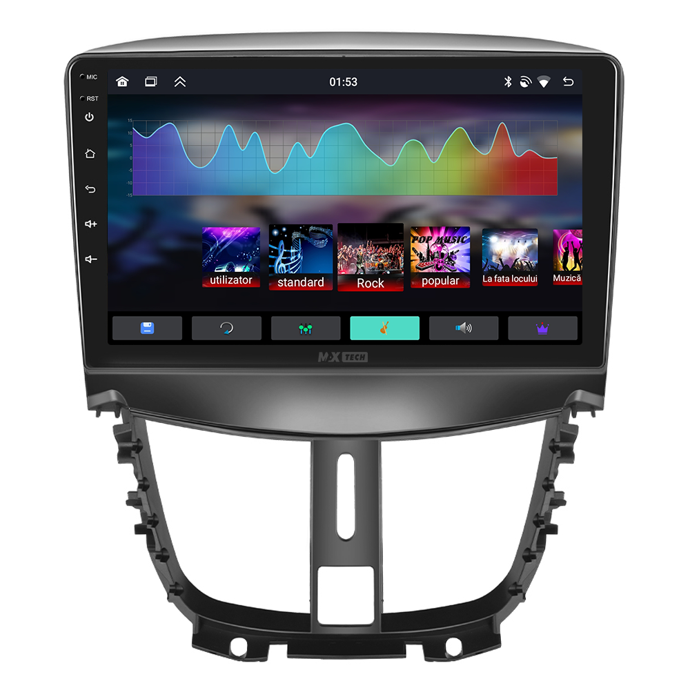 Sistemul include radio RDS cu afisare post si melodie, comutare automata pe frecventa cea mai buna si procesare audio DSP cu egalizator si filtru activ pentru sunet clar, echilibrat si personalizabil.