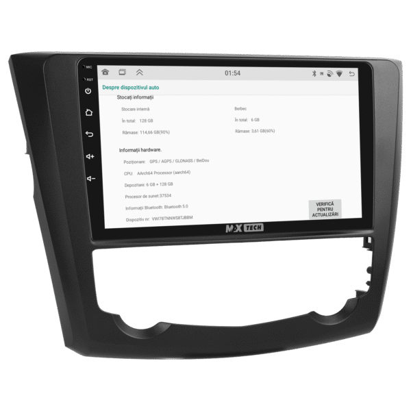 Sistemul MaxTech Pro Series este echipat cu un procesor OctaCore de tip 4+4, 6 GB RAM si 128 GB stocare, pentru multitasking rapid. Ecranul IPS HD de 1280×720 ofera culori reale si vizibilitate excelenta din orice unghi, cu design modern 2.5D.