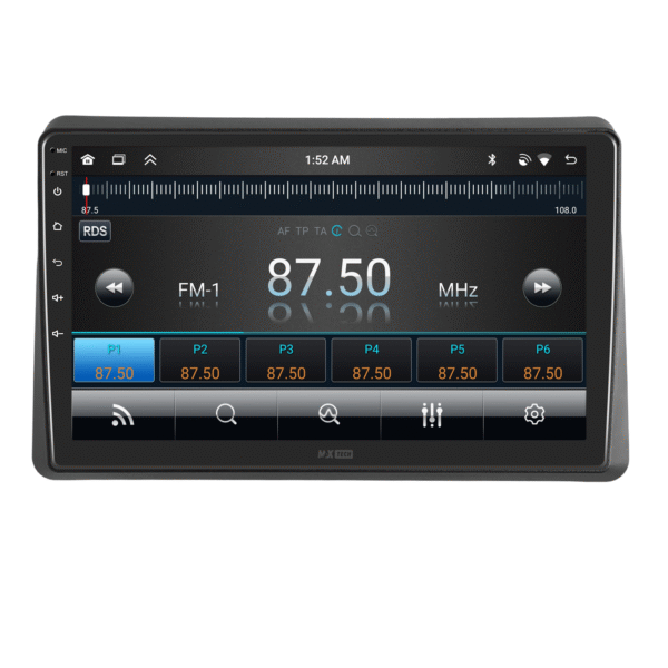 Sistemul include radio RDS cu afisare post si melodie, comutare automata pe frecventa cea mai buna si procesare audio DSP cu egalizator si filtru activ pentru sunet clar, echilibrat si personalizabil.
