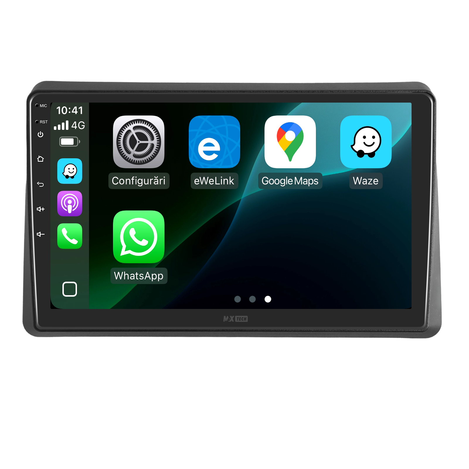 Acest sistem multimedia se instaleaza usor, fara modificari, si vine cu toate cablurile incluse. Suporta CarPlay si Android Auto pentru control direct al telefonului din ecranul masinii.