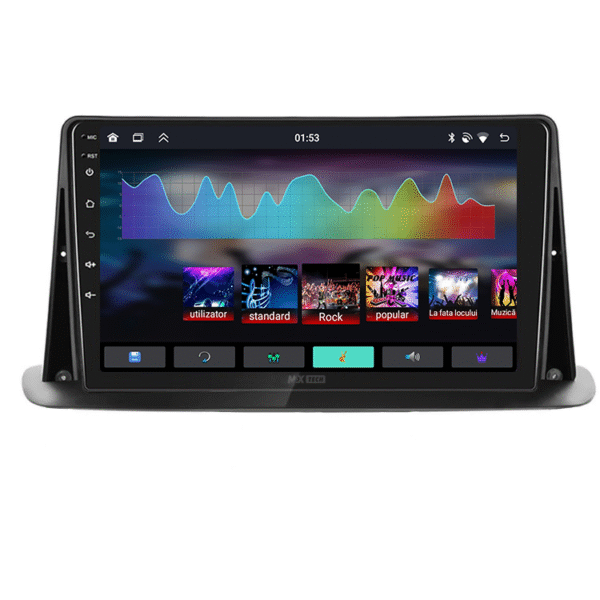 Sistemul include radio RDS cu afisare post si melodie, comutare automata pe frecventa cea mai buna si procesare audio DSP cu egalizator si filtru activ pentru sunet clar, echilibrat si personalizabil.