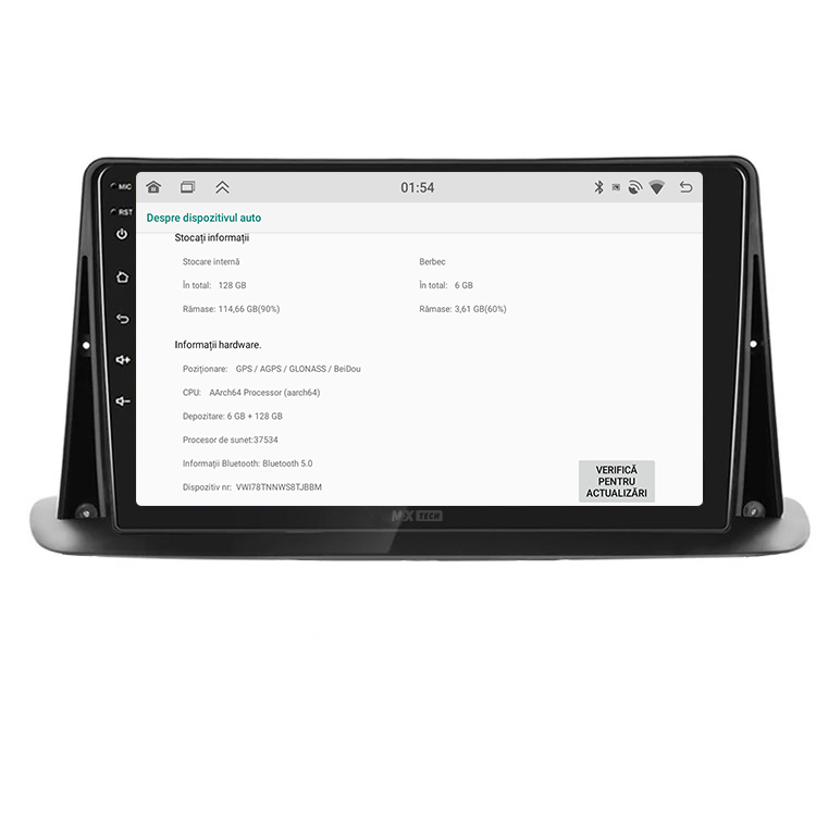 Sistemul MaxTech Pro Series este echipat cu un procesor OctaCore de tip 4+4, 6 GB RAM si 128 GB stocare, pentru multitasking rapid. Ecranul IPS HD de 1280×720 ofera culori reale si vizibilitate excelenta din orice unghi, cu design modern 2.5D.