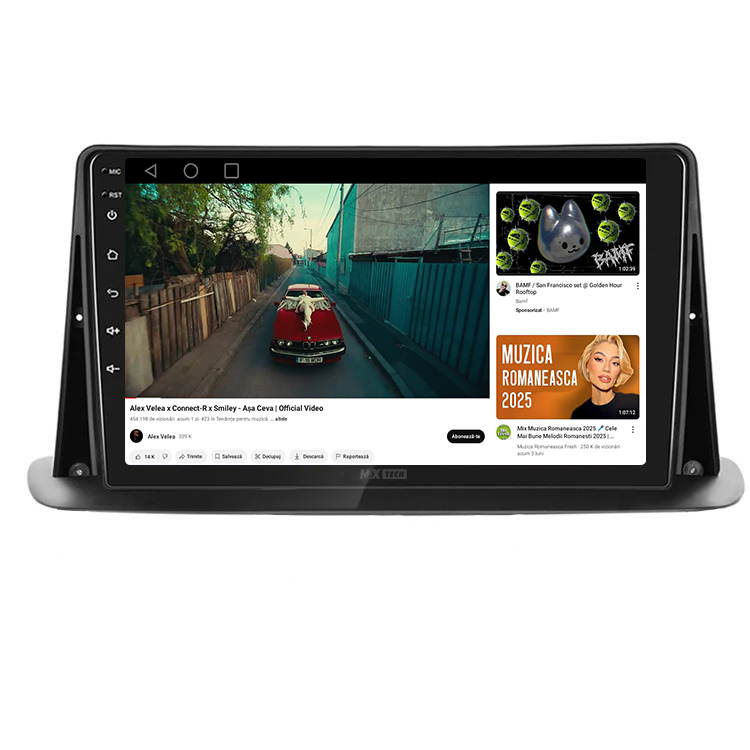 Sistemul include radio RDS cu afisare post si melodie, comutare automata pe frecventa cea mai buna si procesare audio DSP cu egalizator si filtru activ pentru sunet clar, echilibrat si personalizabil.