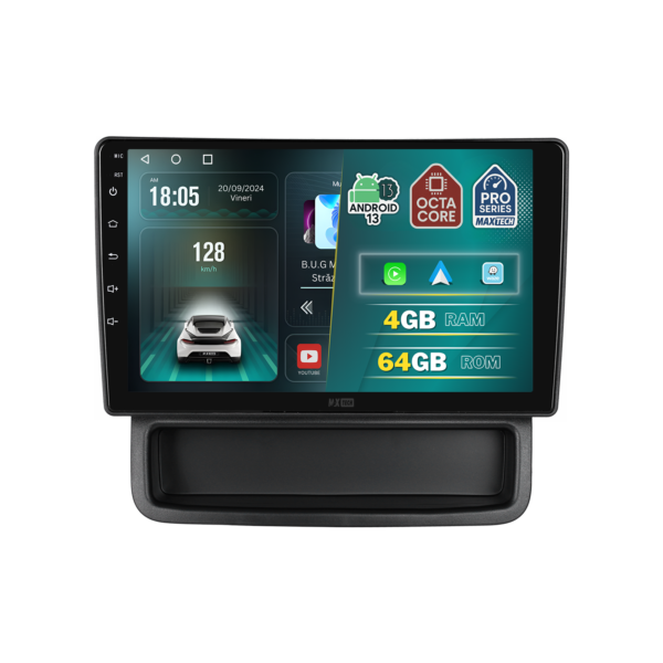 Sistemul MaxTech ProSeries este echipat cu un procesor OctaCore de tip 4+4, 4 GB RAM si 64 GB stocare, pentru multitasking rapid. Ecranul IPS HD de 1280×720 ofera culori reale si vizibilitate excelenta din orice unghi, cu design modern 2.5D.
