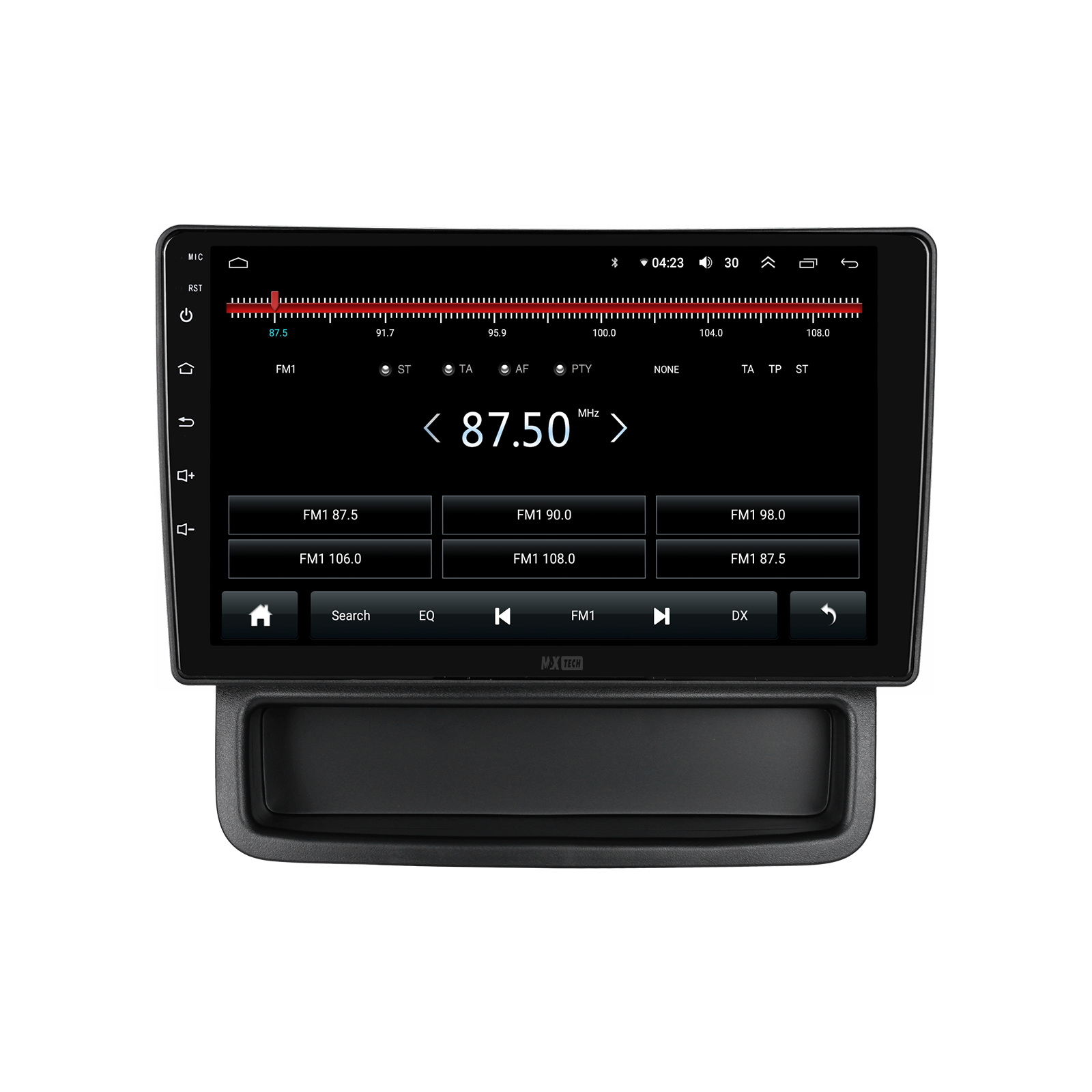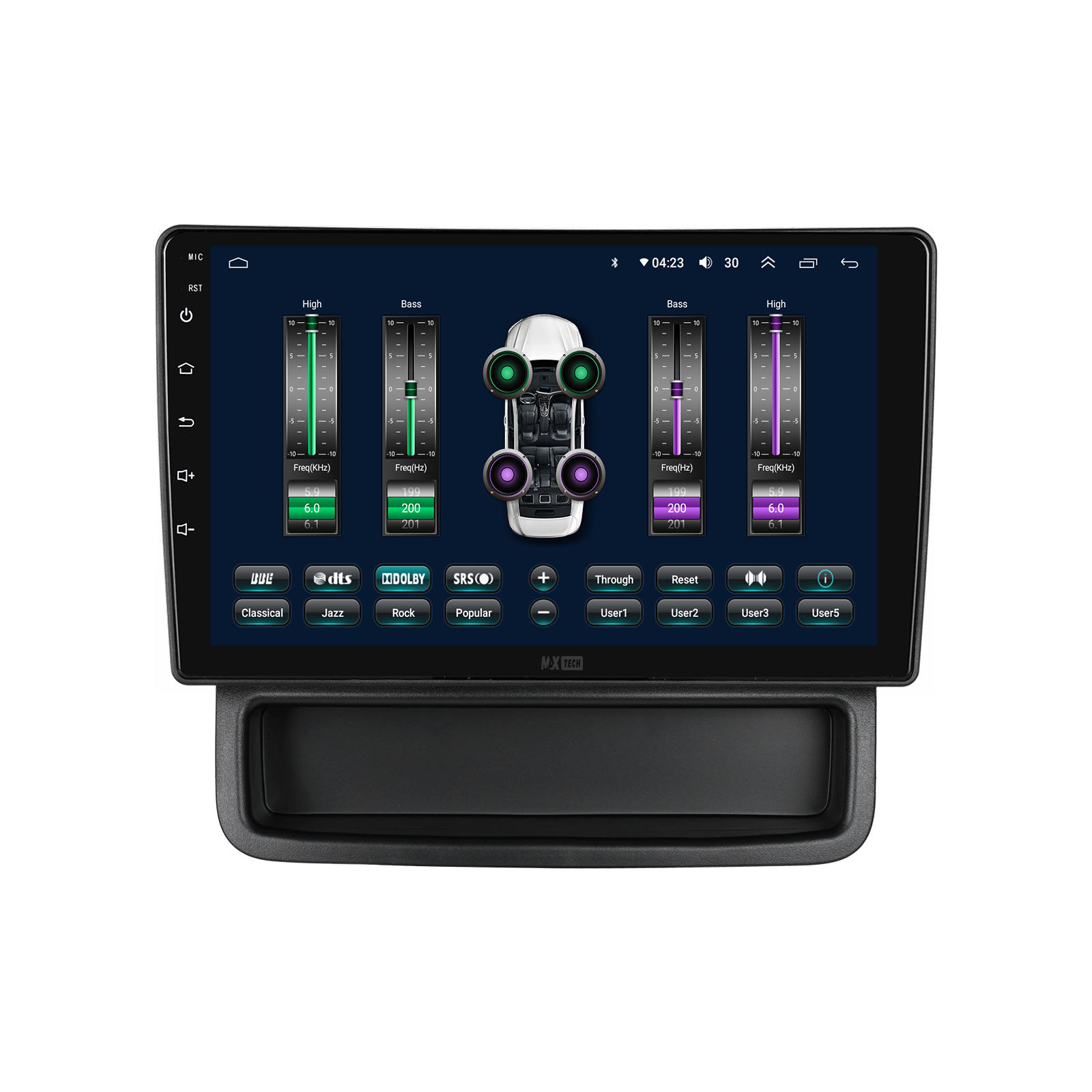 Sistem audio cu suport AM/FM/RDS, transmisie muzica online prin FM. Include equalizator (EQ) pentru ajustare fina a sunetului si filtru activ (Crossover) pentru directionarea frecventelor catre difuzoare dedicate (bass, inalte etc.).