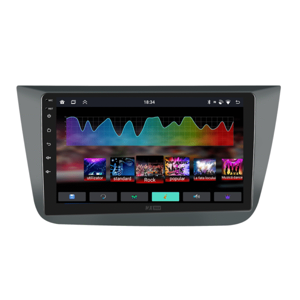 Sistemul include radio RDS cu afisare post si melodie, comutare automata pe frecventa cea mai buna si procesare audio DSP cu egalizator si filtru activ pentru sunet clar, echilibrat si personalizabil.