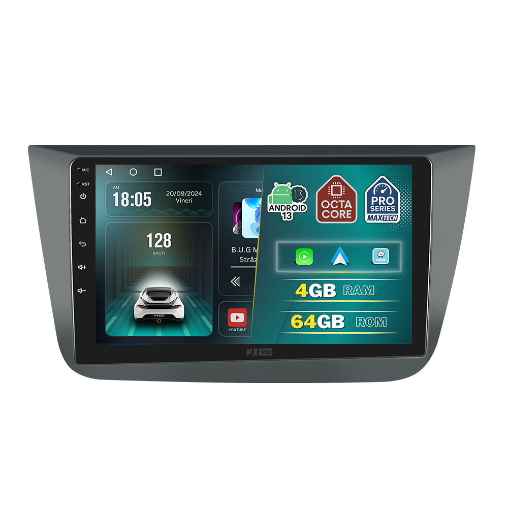Navigatie Seat Altea / Toledo 2004-2015 dedicata, MaxTech® PRO SERIES, 4 GB Ram 64 GB Rom OctaCore, Carplay & Android auto, Ecran 9 ” HD Touch, GPS, Wifi, Bluetooth, Radio, USB, EQ, DSP, Waze
