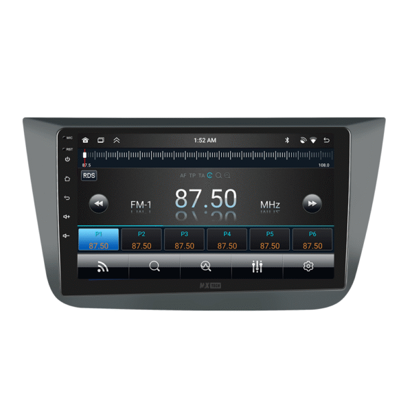 Sistemul include radio RDS cu afisare post si melodie, comutare automata pe frecventa cea mai buna si procesare audio DSP cu egalizator si filtru activ pentru sunet clar, echilibrat si personalizabil.