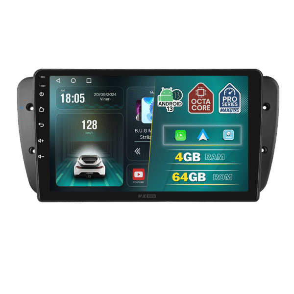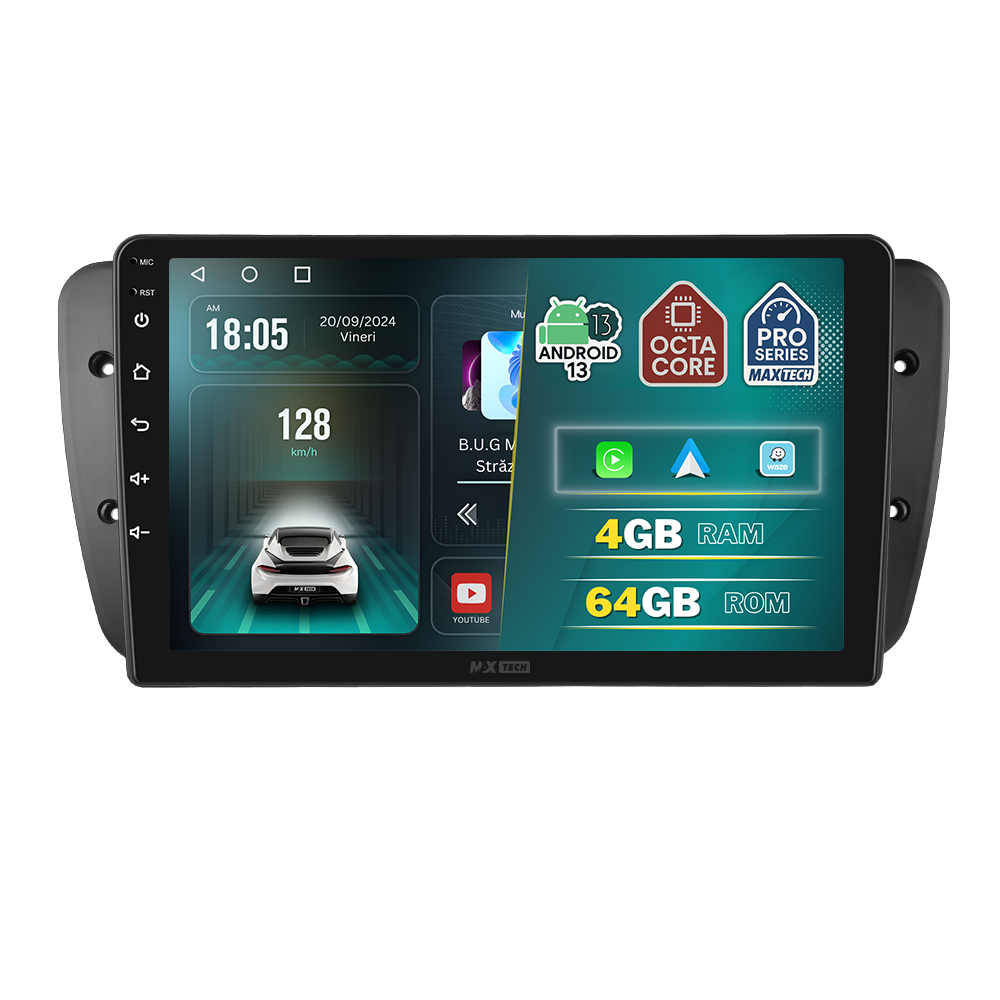 Navigatie Seat Ibiza 2008-2017 dedicata, MaxTech® PRO SERIES, 4 GB Ram 64 GB Rom OctaCore, Carplay & Android auto, Ecran 9 ” HD Touch, GPS, Wifi, Bluetooth, Radio, USB, EQ, DSP, Waze