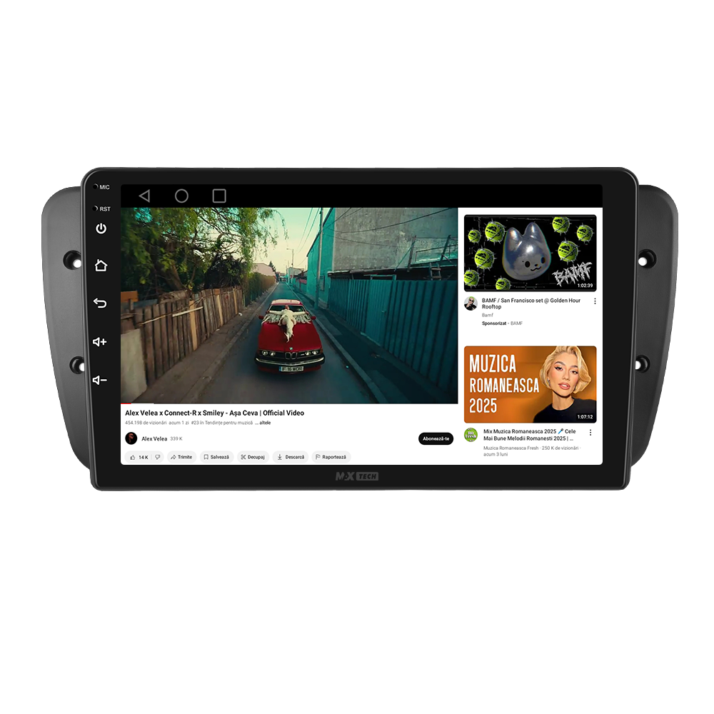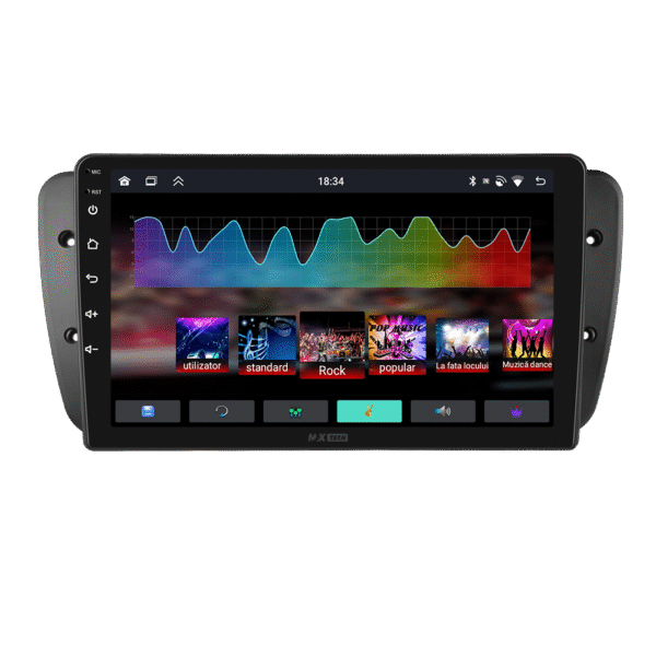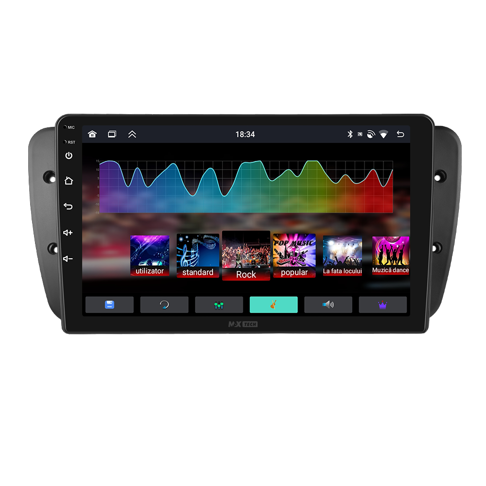 Sistemul include radio RDS cu afisare post si melodie, comutare automata pe frecventa cea mai buna si procesare audio DSP cu egalizator si filtru activ pentru sunet clar, echilibrat si personalizabil.