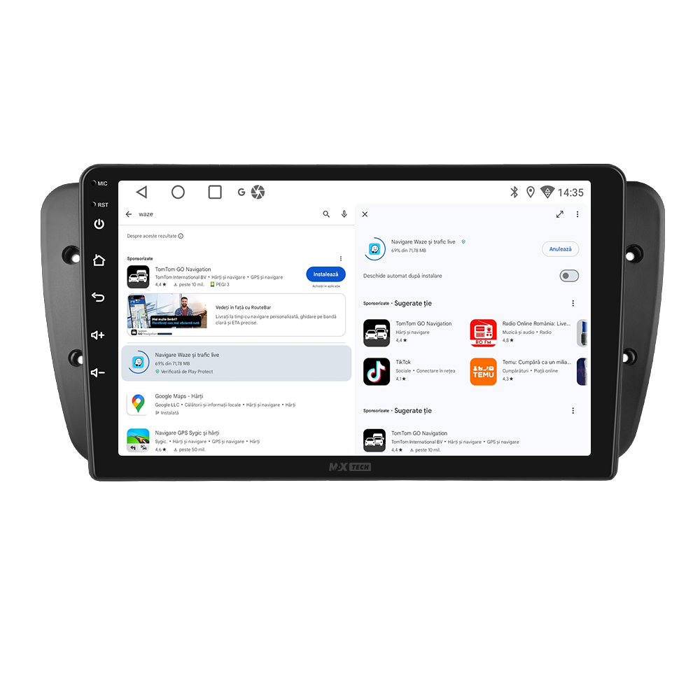 Sistemul ofera functionalitate de navigatie compatibila cu Google Maps, Waze, iGO si alte aplicatii, cu posibilitatea utilizarii hartilor atat online, cat si offline. Suporta comenzile de pe volan, asigurand un control rapid si sigur in timpul condusului.