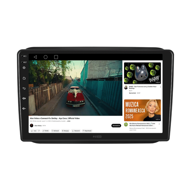 Sistemul include radio RDS cu afisare post si melodie, comutare automata pe frecventa cea mai buna si procesare audio DSP cu egalizator si filtru activ pentru sunet clar, echilibrat si personalizabil.