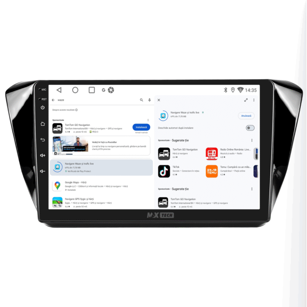 Sistemul ofera functionalitate de navigatie compatibila cu Google Maps, Waze, iGO si alte aplicatii, cu posibilitatea utilizarii hartilor atat online, cat si offline. Suporta comenzile de pe volan, asigurand un control rapid si sigur in timpul condusului.