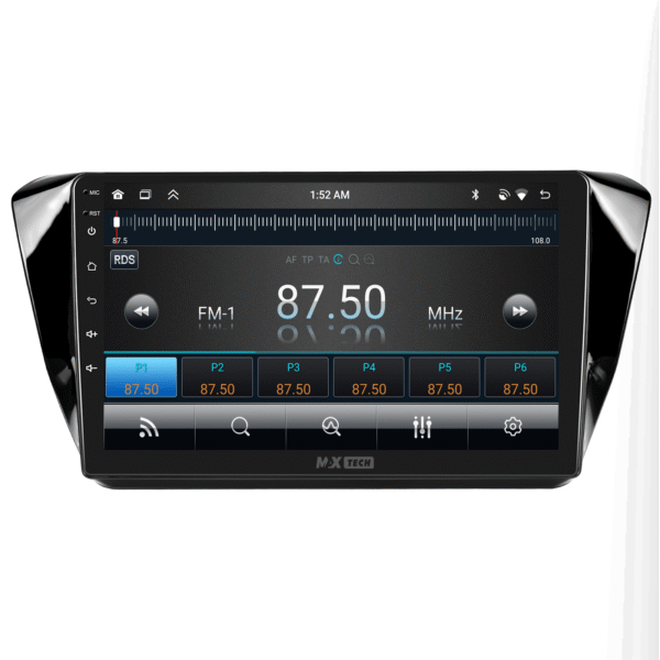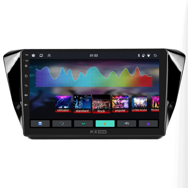 Sistemul include radio RDS cu afisare post si melodie, comutare automata pe frecventa cea mai buna si procesare audio DSP cu egalizator si filtru activ pentru sunet clar, echilibrat si personalizabil.