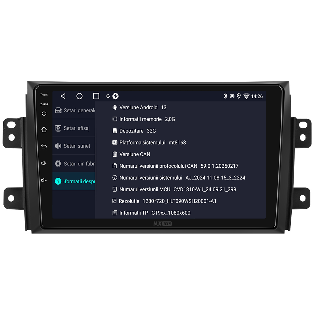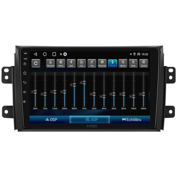 Sistemul include radio RDS cu afisare post si melodie, comutare automata pe frecventa cea mai buna si procesare audio DSP cu egalizator si filtru activ pentru sunet clar, echilibrat si personalizabil.