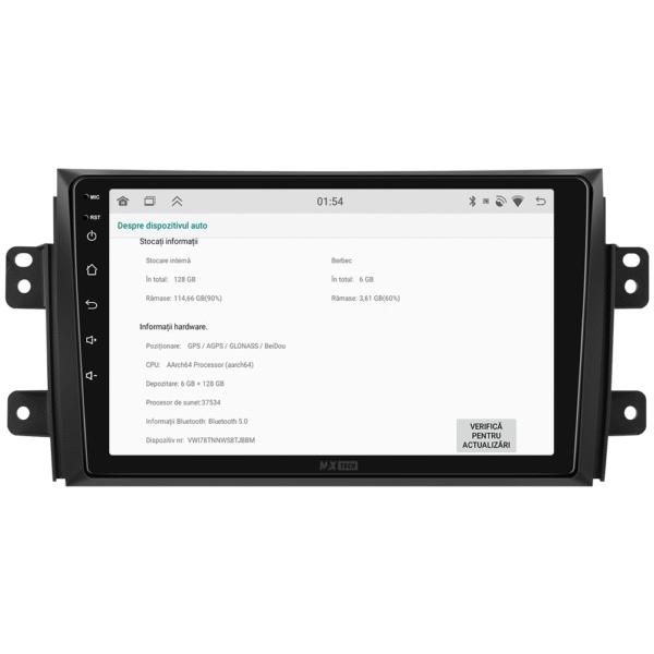 Sistemul MaxTech Pro Series este echipat cu un procesor OctaCore de tip 4+4, 6 GB RAM si 128 GB stocare, pentru multitasking rapid. Ecranul IPS HD de 1280×720 ofera culori reale si vizibilitate excelenta din orice unghi, cu design modern 2.5D.