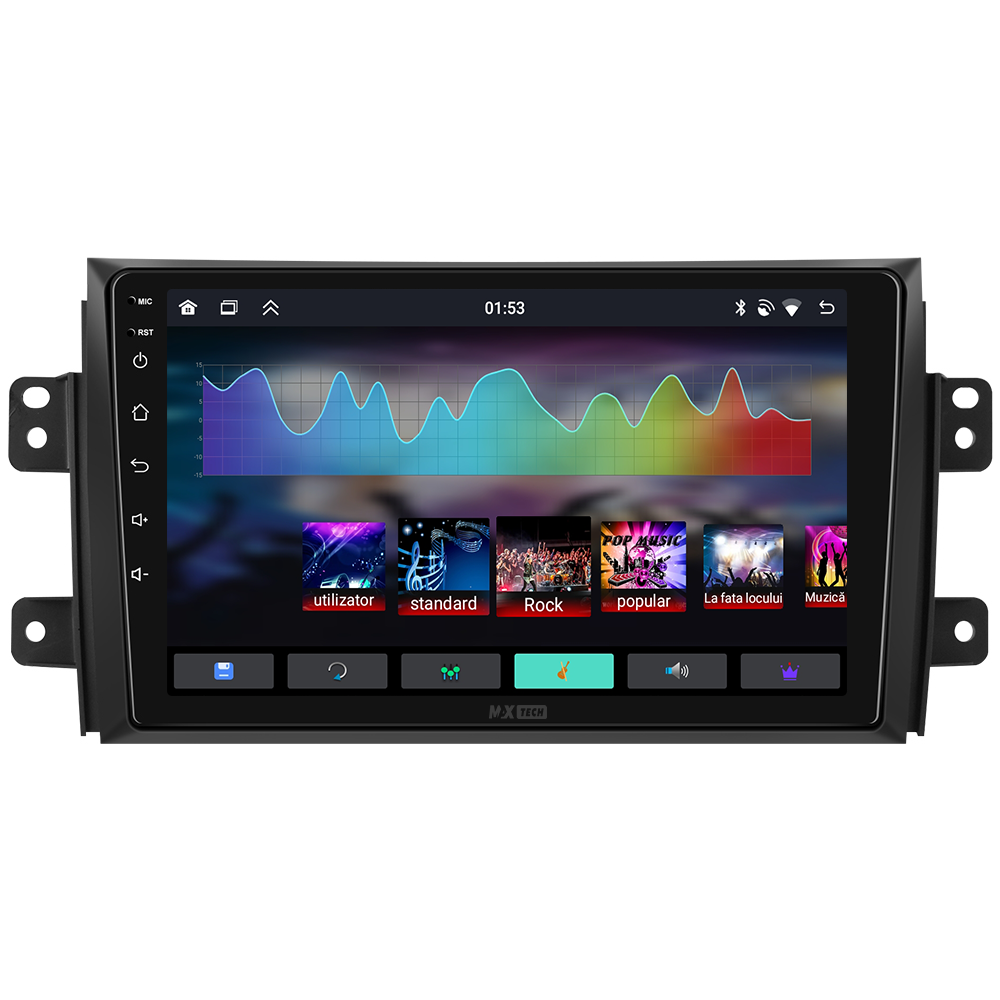 Sistemul include radio RDS cu afisare post si melodie, comutare automata pe frecventa cea mai buna si procesare audio DSP cu egalizator si filtru activ pentru sunet clar, echilibrat si personalizabil.