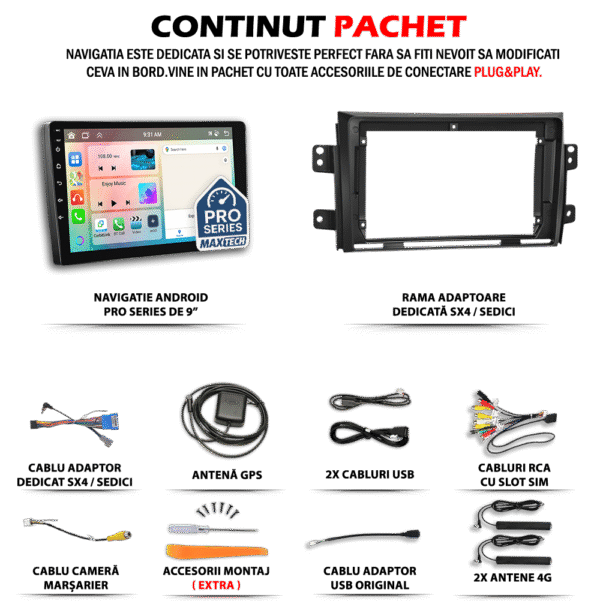 Navigatie Suzuki SX4 / Fiat Sedici 2006-2014 dedicata, MaxTech® PRO SERIES, 8 GB Ram 128 GB Rom OctaCore, Carplay & Android auto, Ecran 9” HD Touch, SIM 4G, GPS, Wifi, Bluetooth, Radio, EQ, Waze