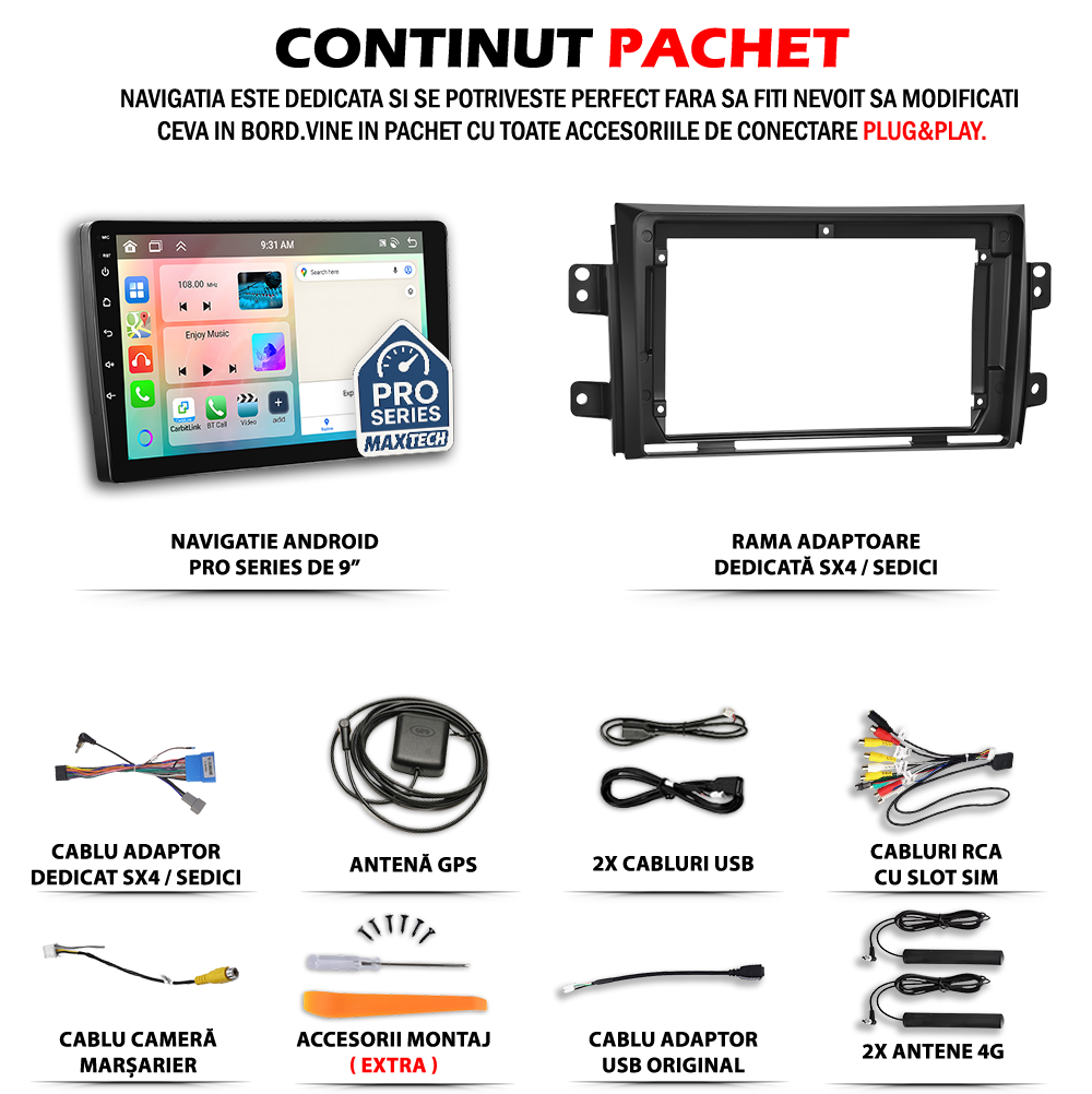 HomeShopSedici 2006-2014Navigatie Suzuki SX4 / Fiat Sedici 2006-2014 dedicata, MaxTech® PRO SERIES, 8 GB Ram 128 GB Rom OctaCore, Carplay & Android auto, Ecran 9” HD Touch, SIM 4G, GPS, Wifi, Bluetooth, Radio, EQ, Waze