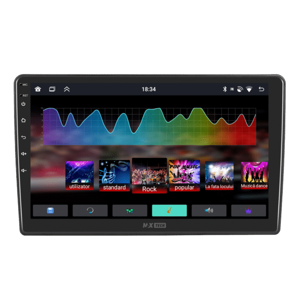Sistemul include radio RDS cu afisare post si melodie, comutare automata pe frecventa cea mai buna si procesare audio DSP cu egalizator si filtru activ pentru sunet clar, echilibrat si personalizabil.