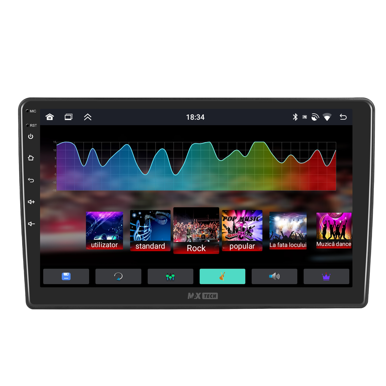 Sistemul include radio RDS cu afisare post si melodie, comutare automata pe frecventa cea mai buna si procesare audio DSP cu egalizator si filtru activ pentru sunet clar, echilibrat si personalizabil.