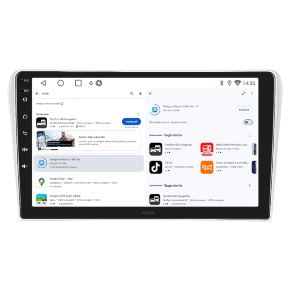 Sistemul ofera functionalitate de navigatie compatibila cu Google Maps, Waze, iGO si alte aplicatii, cu posibilitatea utilizarii hartilor atat online, cat si offline. Suporta comenzile de pe volan, asigurand un control rapid si sigur in timpul condusului.