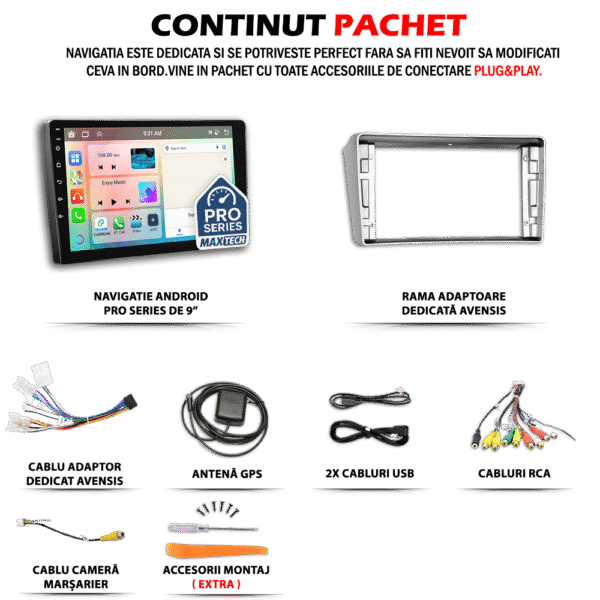 Navigatie Toyota Avensis T25 (2002-2008) dedicata, MaxTech® PRO SERIES, 6 GB Ram 128 GB Rom OctaCore, Carplay & Android auto, Ecran 9” HD Touch, GPS, Wifi, Bluetooth, Youtube, Waze