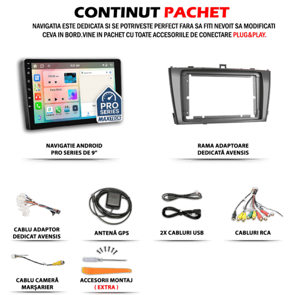 Navigatie Toyota Avensis T27 (2009-2015) dedicata, MaxTech® PRO SERIES, 4 GB Ram 64 GB Rom OctaCore, Carplay & Android auto, Ecran 9 ” HD Touch, GPS, Wifi, Bluetooth, Radio, USB, EQ, DSP, Waze