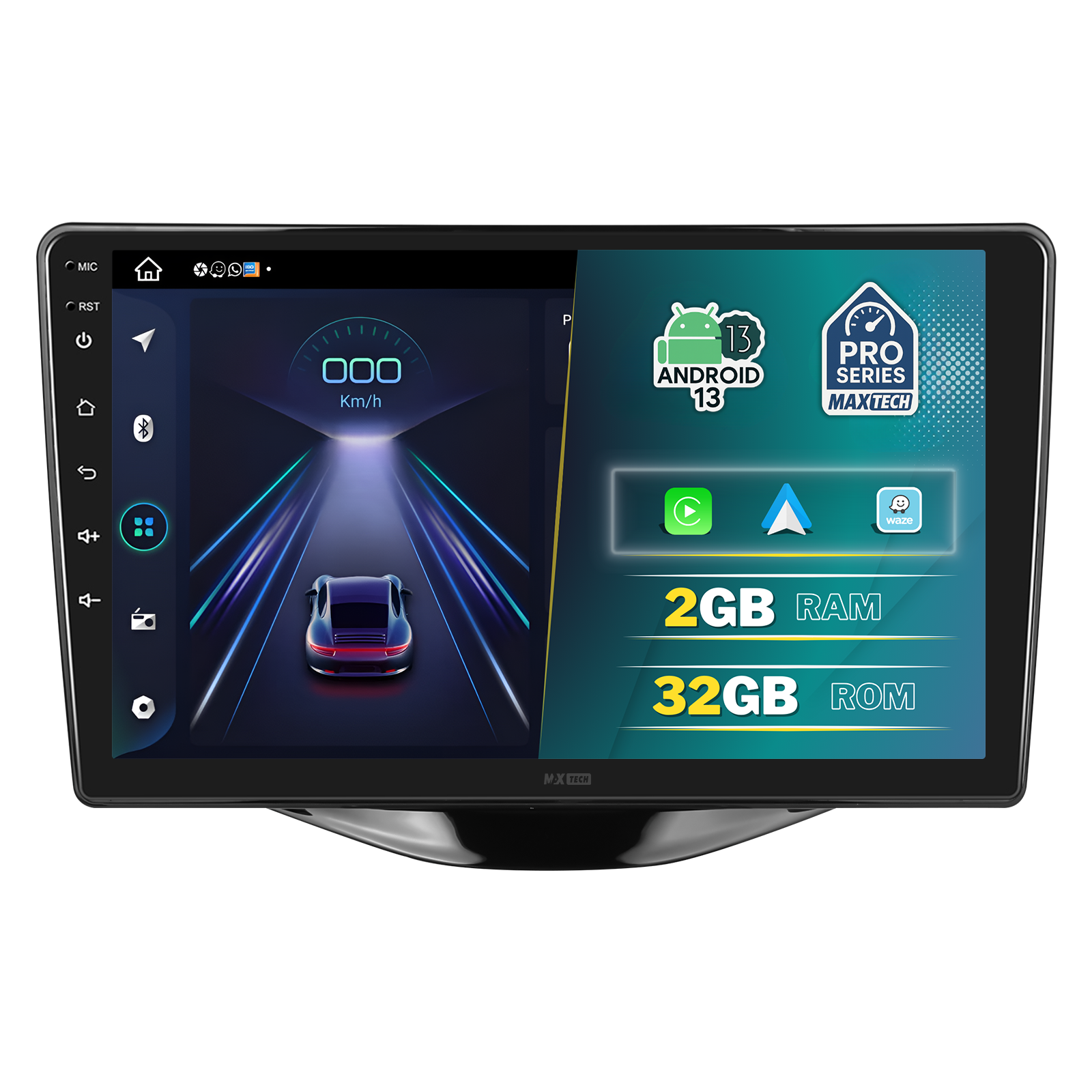 Navigatie Toyota Aygo/Peugeot 108/Citroen C1 (2014-2022) dedicata, MaxTech® PRO SERIES, 2 GB Ram 32 GB Rom, Carplay & Android auto, Ecran 9 ” HD Touch, GPS, Wifi, Bluetooth, Radio, USB, EQ, DSP, Waze