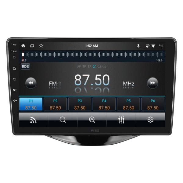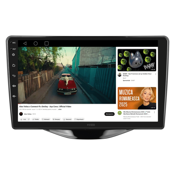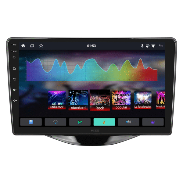 Sistemul include radio RDS cu afisare post si melodie, comutare automata pe frecventa cea mai buna si procesare audio DSP cu egalizator si filtru activ pentru sunet clar, echilibrat si personalizabil.