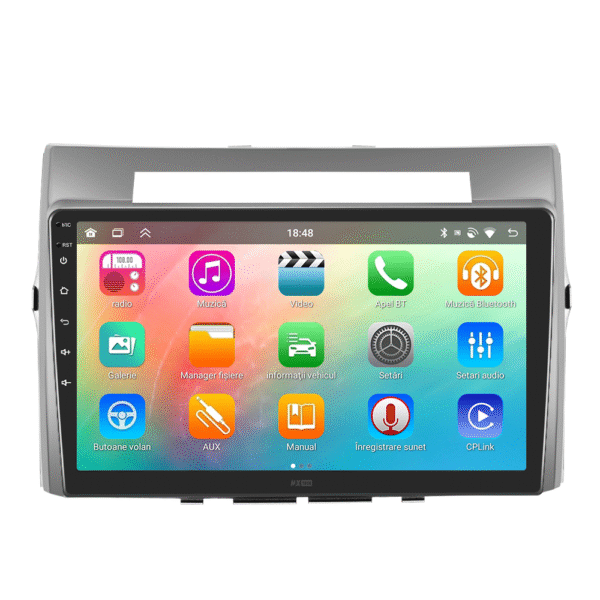 Acest sistem multimedia se instaleaza usor, fara modificari, si vine cu toate cablurile incluse. Suporta CarPlay si Android Auto pentru control direct al telefonului din ecranul masinii.