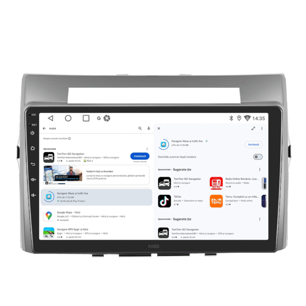 Sistemul ofera functionalitate de navigatie compatibila cu Google Maps, Waze, iGO si alte aplicatii, cu posibilitatea utilizarii hartilor atat online, cat si offline. Suporta comenzile de pe volan, asigurand un control rapid si sigur in timpul condusului.