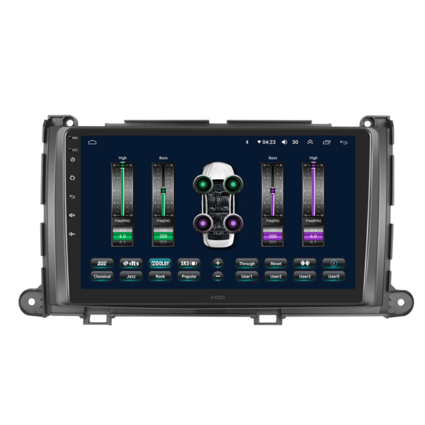 Sistem audio cu suport AM/FM/RDS, transmisie muzica online prin FM. Include equalizator (EQ) pentru ajustare fina a sunetului si filtru activ (Crossover) pentru directionarea frecventelor catre difuzoare dedicate (bass, inalte etc.).