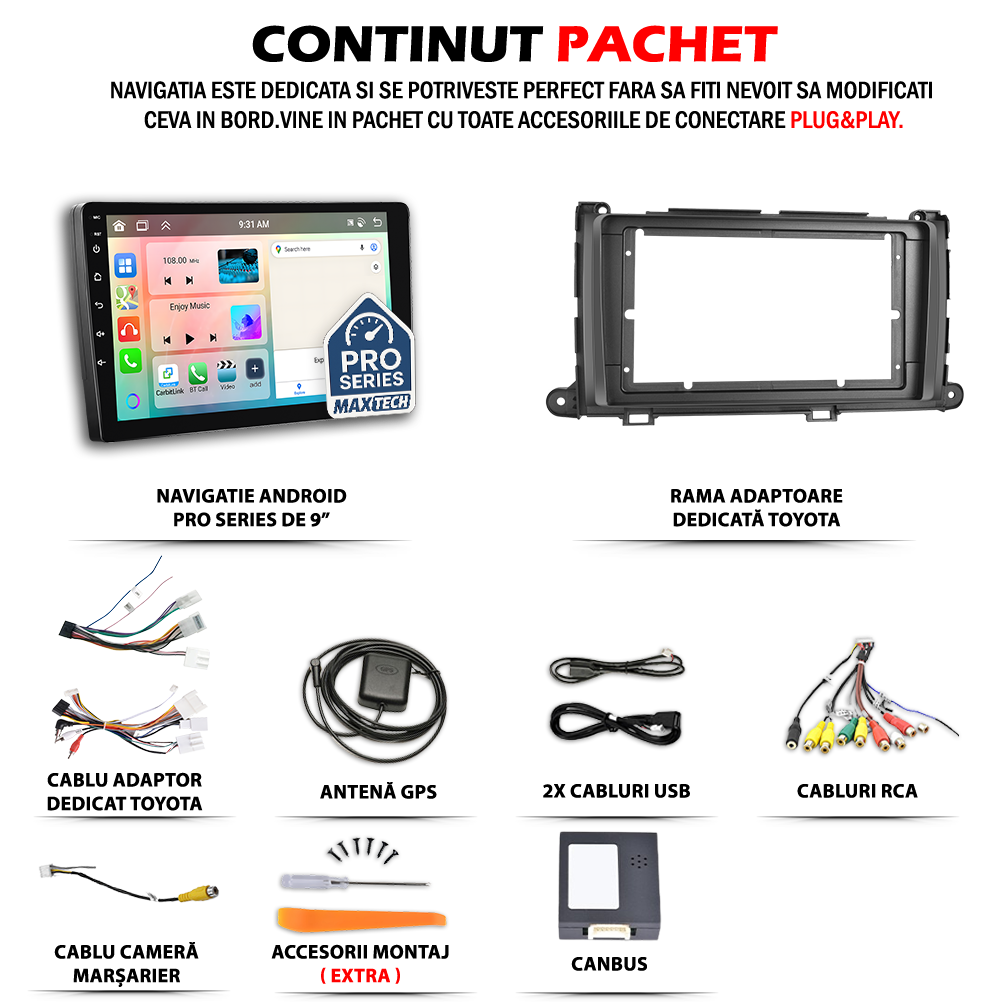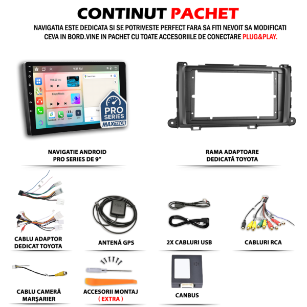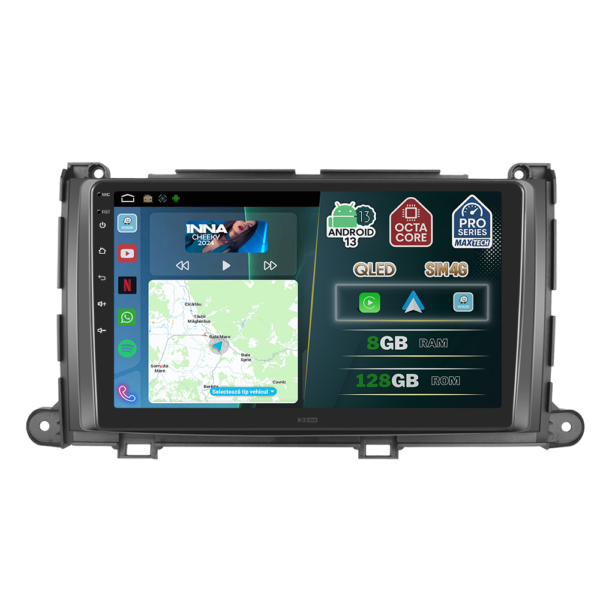 Navigatie Toyota Sienna 2011-2013 dedicata, MaxTech® PRO SERIES, 8 GB Ram 128 GB Rom OctaCore, Carplay & Android auto, Ecran 9” HD Touch, SIM 4G, GPS, Wifi, Bluetooth, Radio