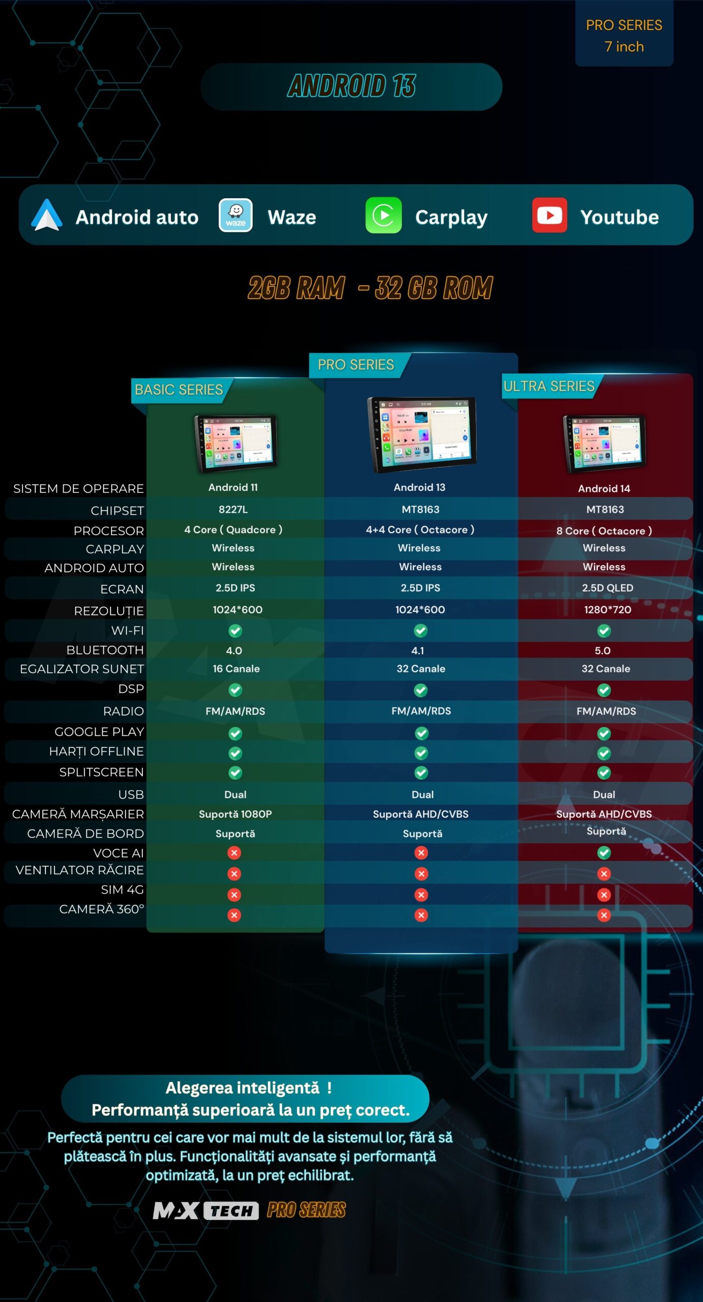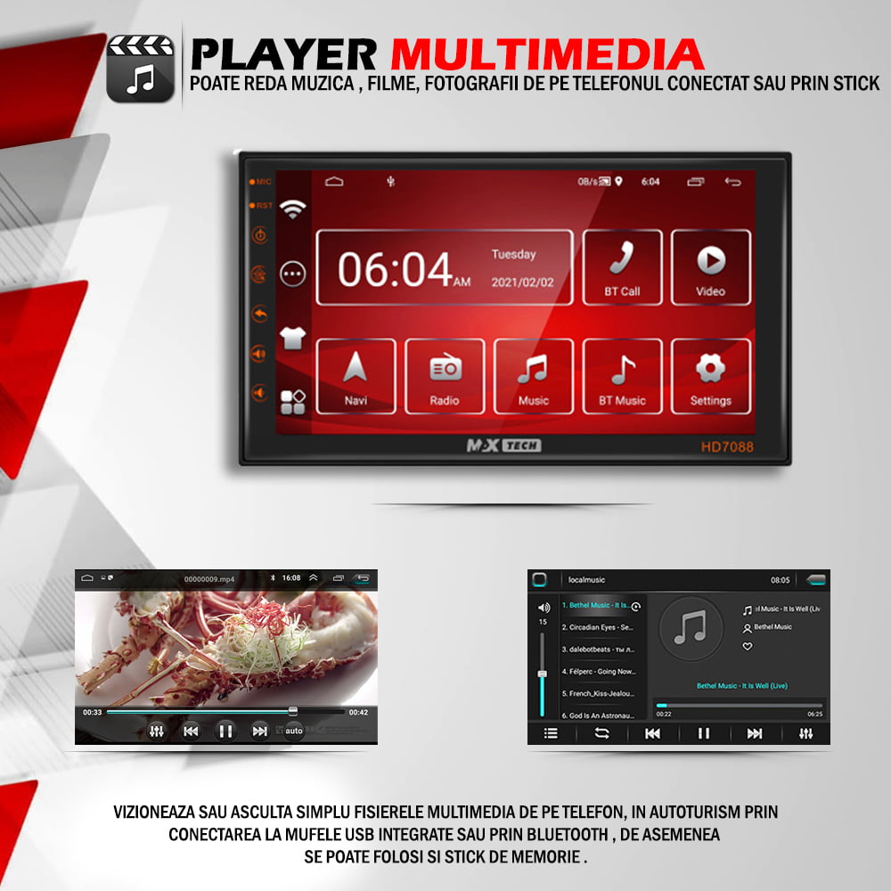 | Formate media suportate | APE, FLAC, WAV, MP3, WMA, AVI, MP4, PNG, JPEG, GIF |