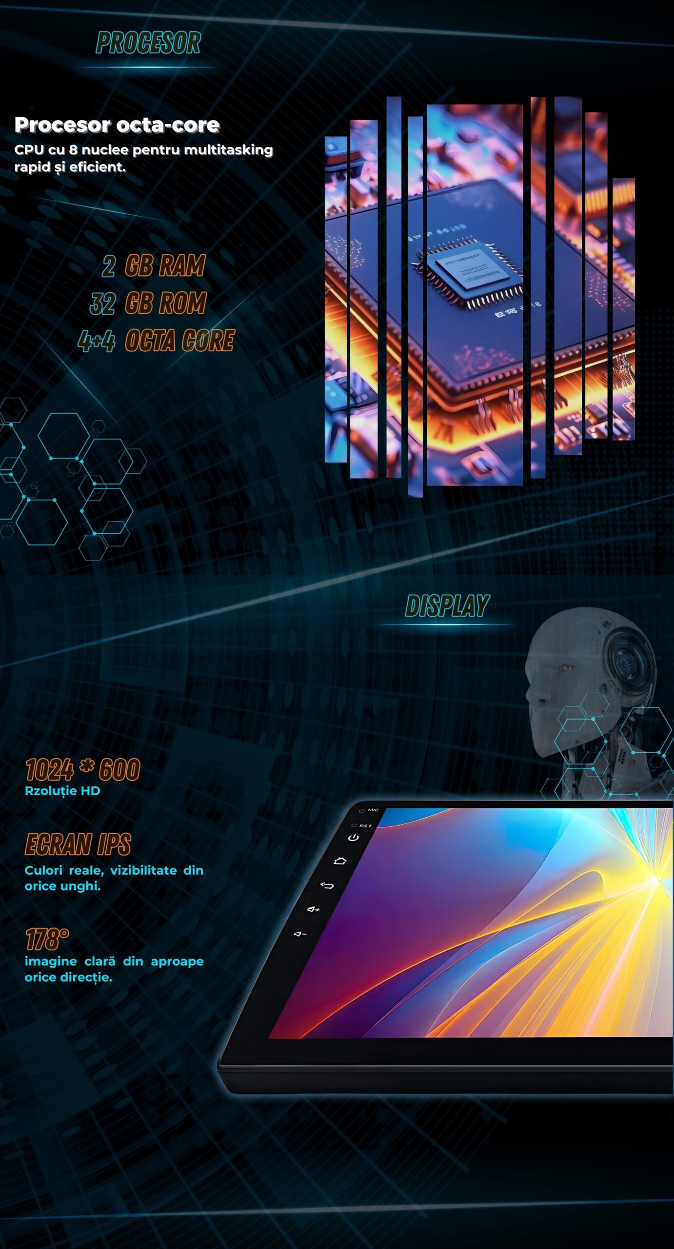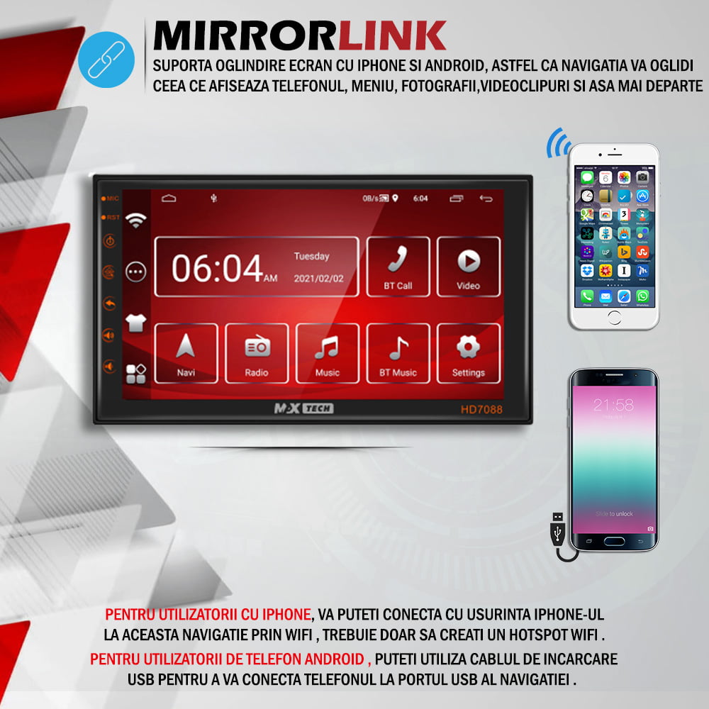 | Conexiuni externe | Jack antena GPS, Jack antena radio, Port camera auto, Port iPhone/iPod |