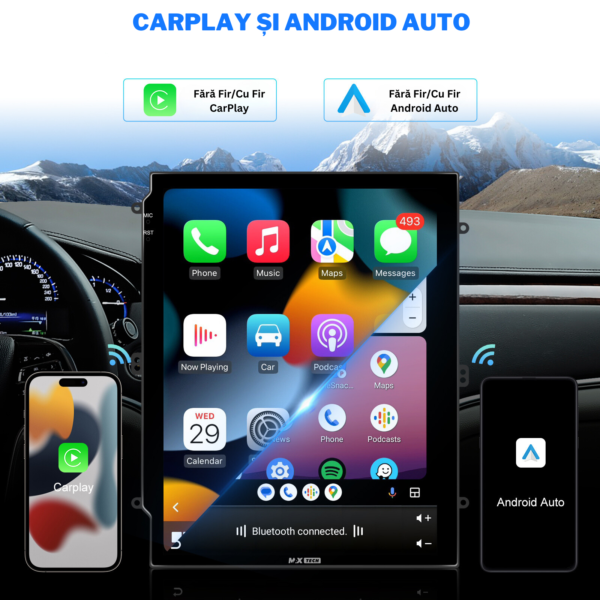 Navigatie Universala 2 DIN, MaxTech®, Android 13, ecran de 9.7 inch, 4GB Ram 64 ROM, GPS, Touchscreen, Bluetooth, Carplay, Radio, Wifi, protectie ecran,JUNSUN