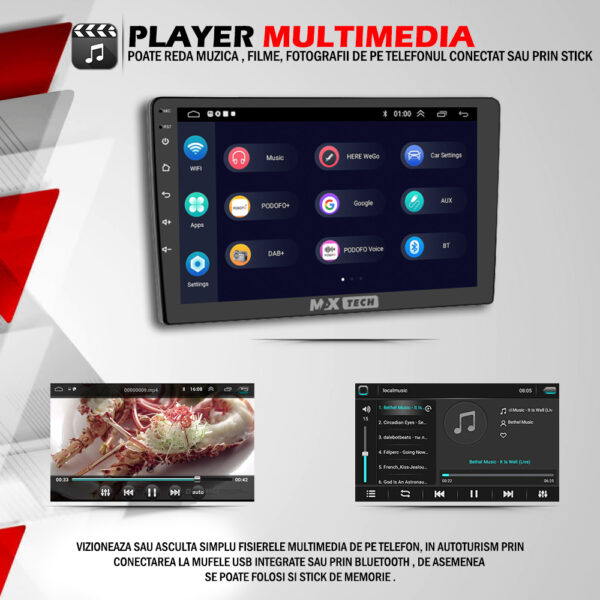- 13. Vă puteți bucura de muzică de pe telefonul conexiunea se face prin usb sau Bluetooth