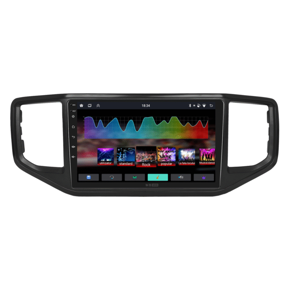 Sistemul include radio RDS cu afisare post si melodie, comutare automata pe frecventa cea mai buna si procesare audio DSP cu egalizator si filtru activ pentru sunet clar, echilibrat si personalizabil.