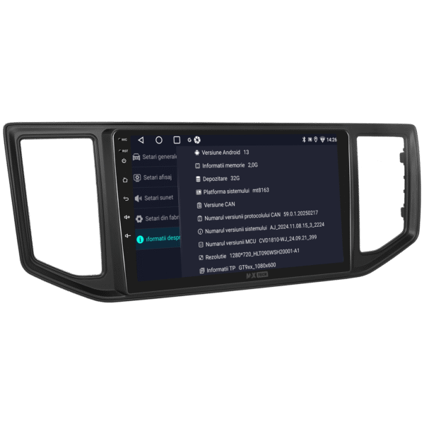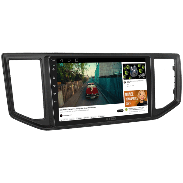 Sistemul include radio RDS cu afisare post si melodie, comutare automata pe frecventa cea mai buna si procesare audio DSP cu egalizator si filtru activ pentru sunet clar, echilibrat si personalizabil.