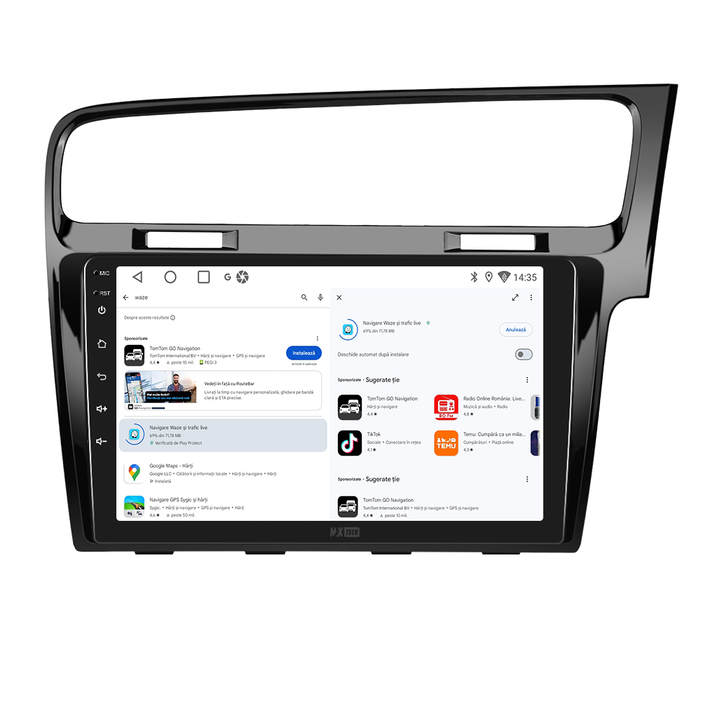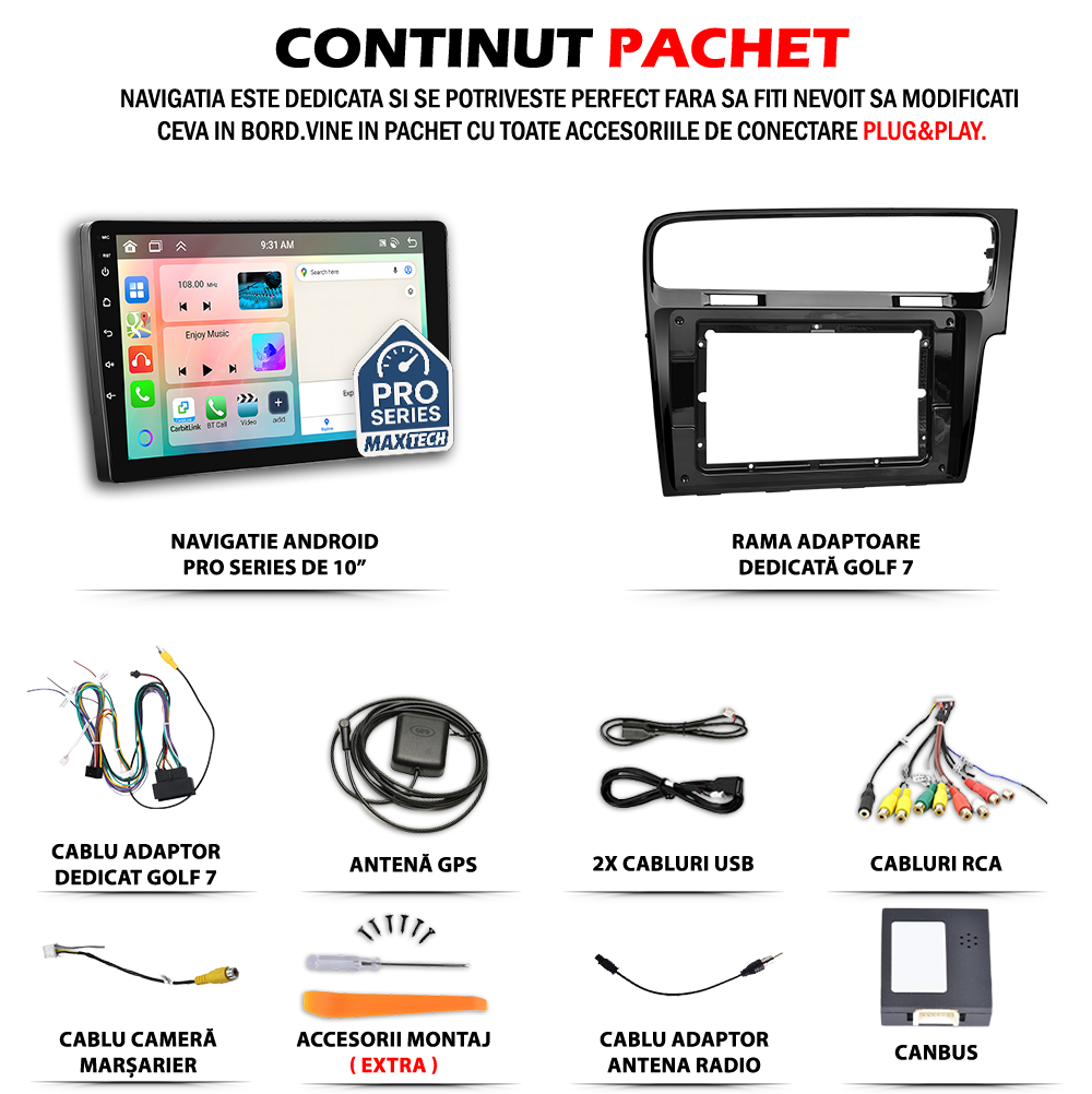 Navigatie Volkswagen Golf 7 (2012-2020) dedicata, MaxTech® PRO SERIES, 6 GB Ram 128 GB Rom OctaCore, Carplay & Android auto, Ecran 10” HD Touch, GPS, Wifi, Bluetooth, Radio, USB, EQ, Waze