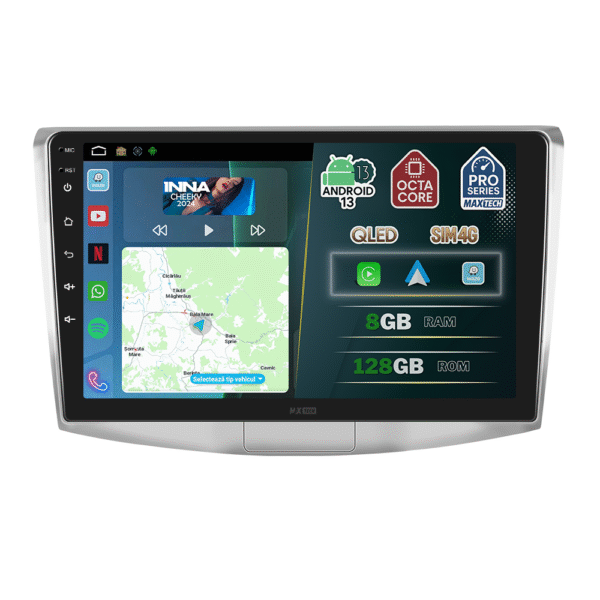 Navigatie cu procesor 8-core la 2.5GHz, 8GB RAM si 128GB stocare. Ecran QLED 1280×720 cu sunet Hi-Res (DSP ADI) pentru performanta rapida si vizualizare clara.