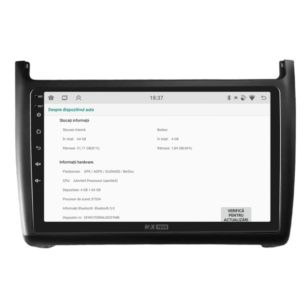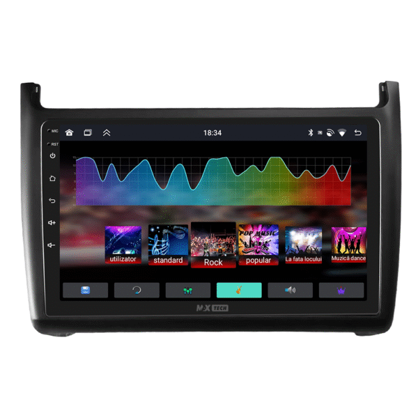 Sistemul include radio RDS cu afisare post si melodie, comutare automata pe frecventa cea mai buna si procesare audio DSP cu egalizator si filtru activ pentru sunet clar, echilibrat si personalizabil.