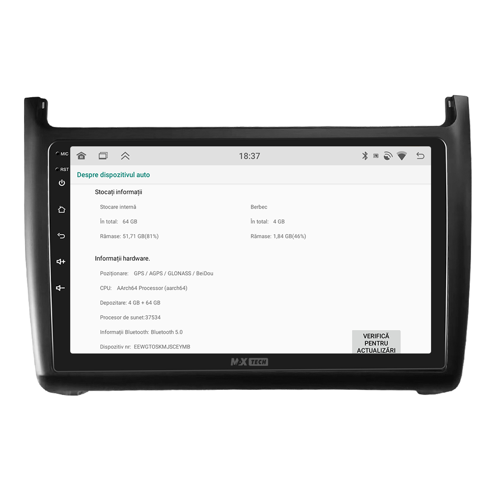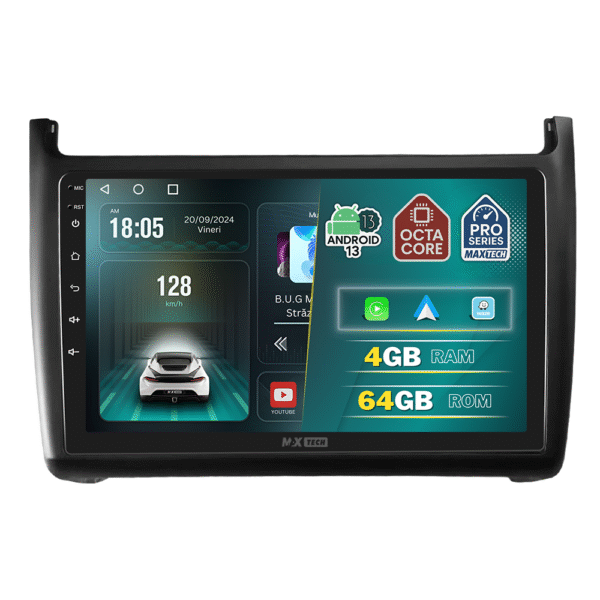 Navigatie Volkswagen POLO 2011-2017 dedicata, MaxTech® PRO SERIES, 4 GB Ram 64 GB Rom OctaCore, Carplay & Android auto, Ecran 9 ” HD Touch, GPS, Wifi, Bluetooth, Radio, USB, EQ, DSP, Waze