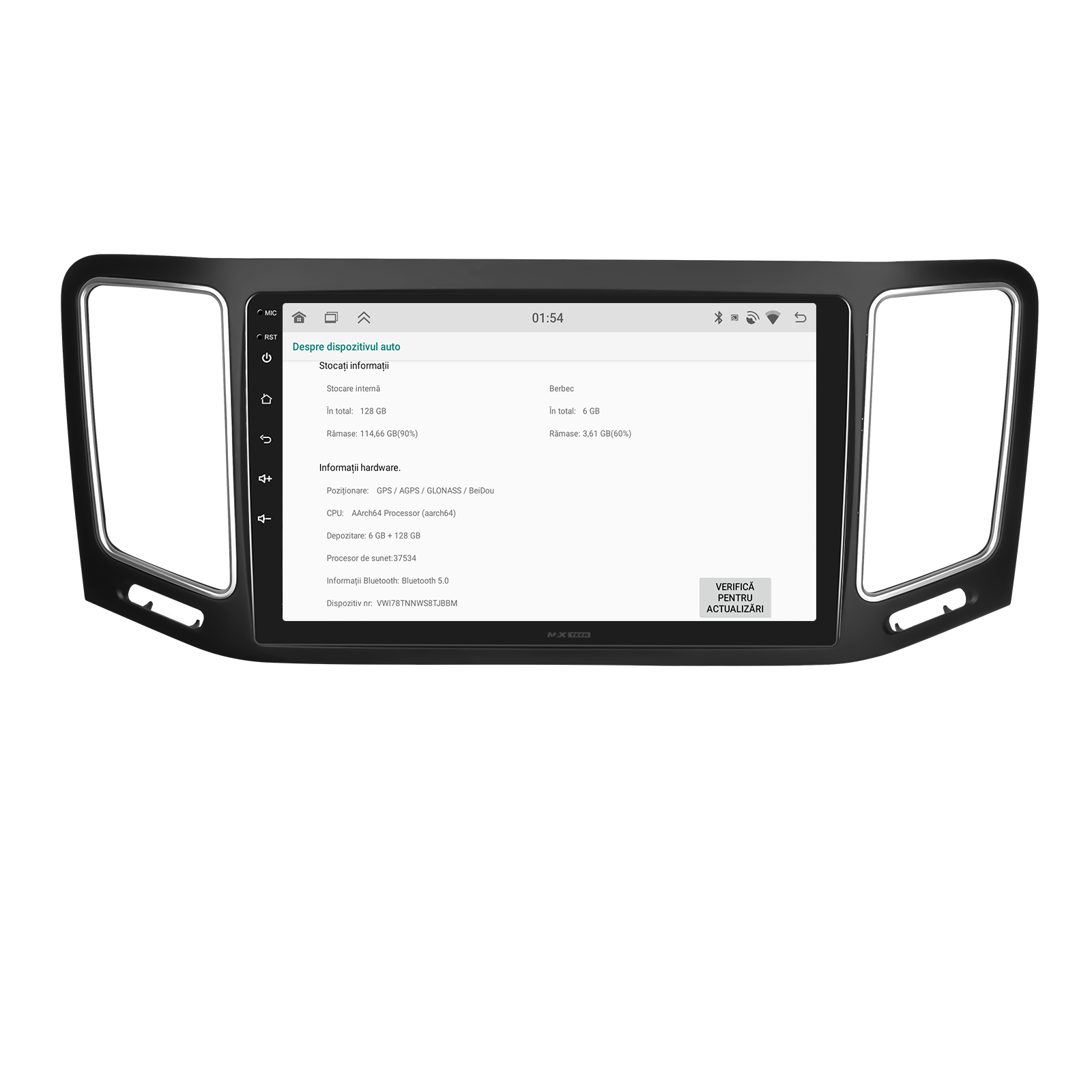 Sistemul MaxTech Pro Series este echipat cu un procesor OctaCore de tip 4+4, 6 GB RAM si 128 GB stocare, pentru multitasking rapid. Ecranul IPS HD de 1280×720 ofera culori reale si vizibilitate excelenta din orice unghi, cu design modern 2.5D.